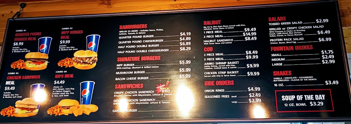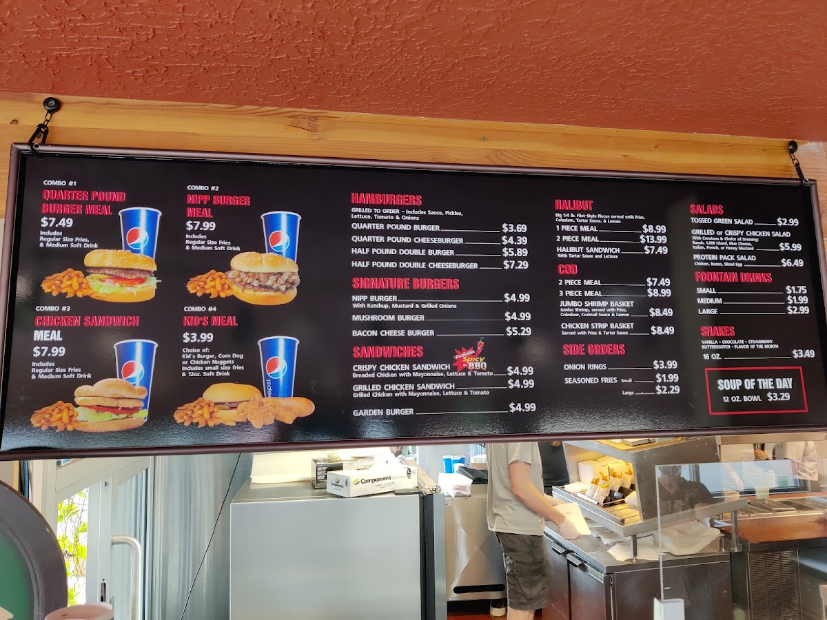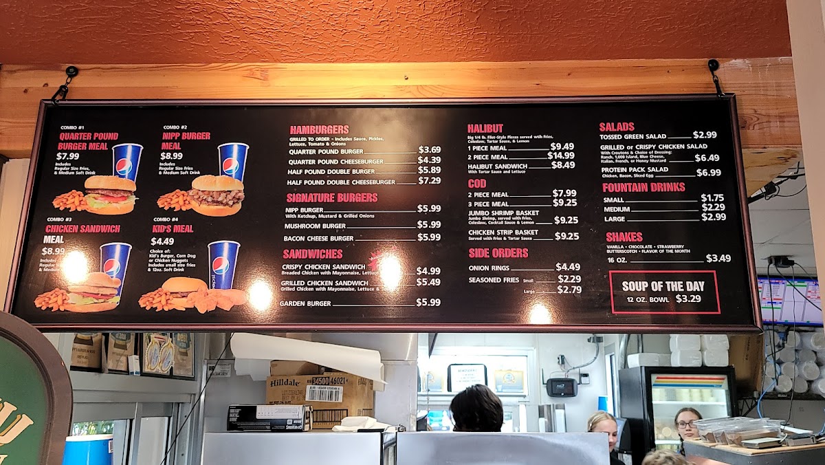 The menu at Nipp's is packed with mouthwatering options that are both affordable and delicious. Indulge in their Combo 1, featuring a juicy quarter-pound burger served with regular-size fries and a refreshing medium soft drink for just $5.29. If you're in the mood for something a bit different, try the Nipp Burger or the chicken sandwich—both equally satisfying and bursting with flavor. Kids will love the Kid's Meal, which offers a choice of a kid's burger, corn dog, or chicken nuggets, along with small fries and a 12 oz. soft drink for just $3.25.